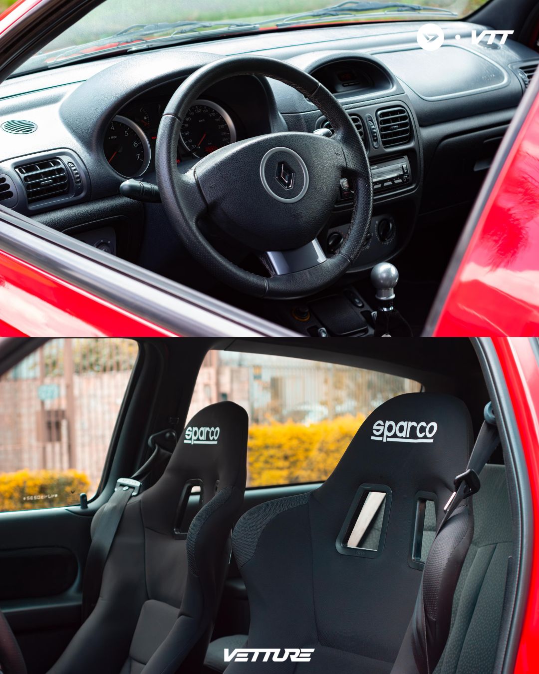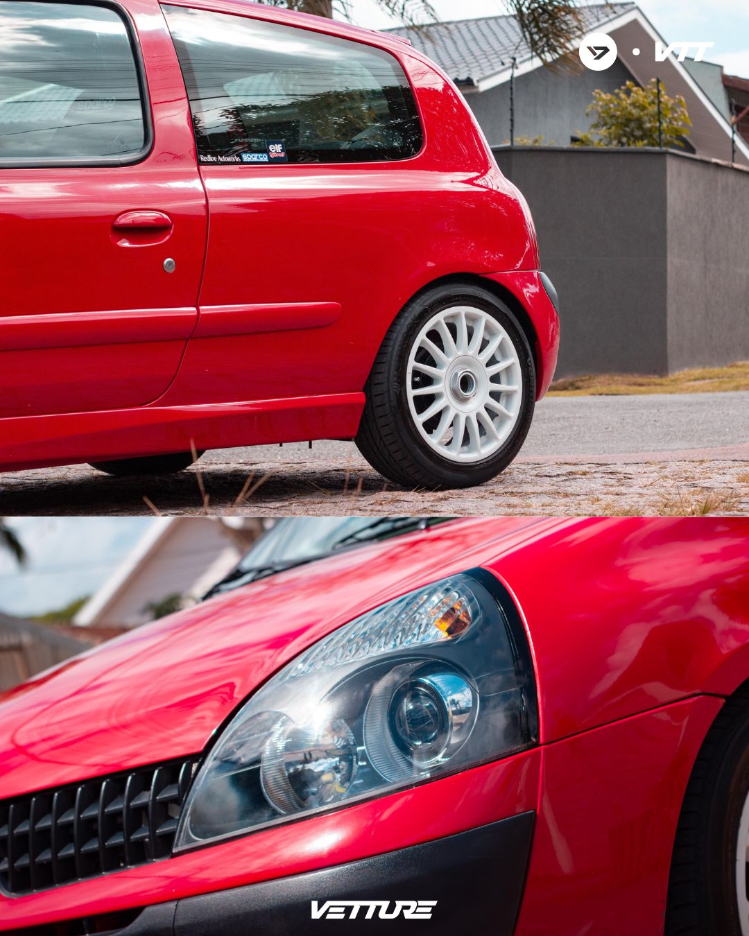• Grade frontal, botão traseiro e aplique lateral do Clio rs